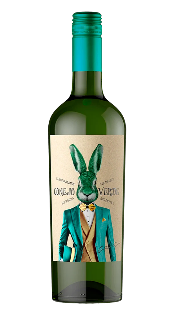 El Conejo Verde Blanc de Blancs, de la familia Falasco, proviene del Valle de Uco. Es un blanco complejo pero muy accesible, fruto de una mezcla bien pensada: viognier, sauvignon blanc y torrontés. Esto le otorga un perfil aromático muy interesante: flores blancas, frutas maduras como durazno y piña, más un toque herbal y cítrico.